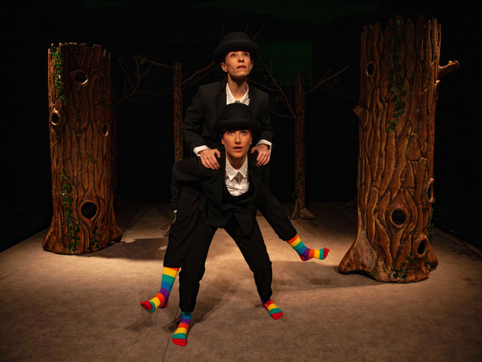 tÁ és una obra de dansa-teatre on el realisme màgic pren vida en un bosc on es naturalitza allò irreal o estrany com a quelcom comú. Els seus dos personatges, peculiars, divertits i sensibles, desenvoluparan una relació d’amistat basada en el creixement emocional a través del joc. Al final de l’espectacle es convidarà als infants a endinsar-se en el bosc d’una manera molt especial... Ballant.