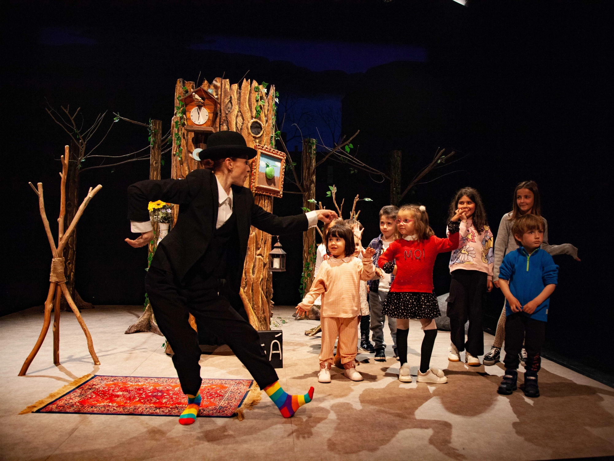 És un espectacle que utilitza el cos i les onomatopeies amb l’objectiu de posar en valor no només el que es diu, sinó el que es transmet. Les nostres paraules i moviments plens de variacions, dinàmiques, vibracions i matisos, ens endinsen en un món ple d’emocions.